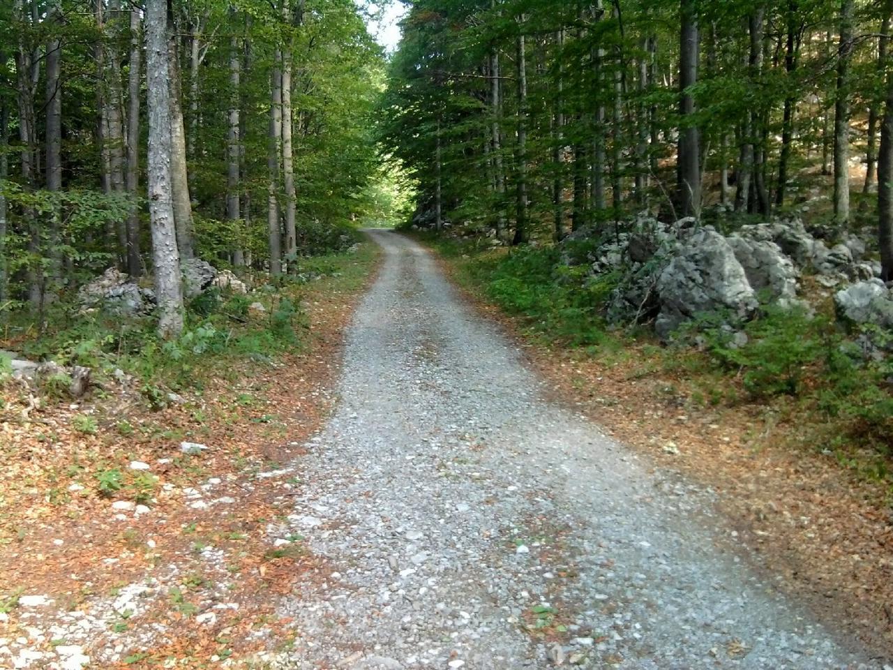 Za razliko od drugih kolesarskih izletov je takoj na začetku sledil dolg spust proti Podnanosu, kjer se začne cesta vzpenjati proti vrhu. Prečkal sem avtocesto in začel šteti serpentine proti vrhu. Asfaltirana cesta nas pripelje mimo lovske koče in kmalu po tem jo zamenja grob makadam. Sicer so posamezni ovinki in strmejši vzponi betonski in kakšen del je tudi pred kratkim asfaltiran, ampak grobo kamenje na makadamu povzroča kar nekaj problemov pri kolesarjenju v taki strmini. Na srečo ni bilo nobenega avtomobila, ki bi dvigal prah in lahko sem užival v svežem zraku.